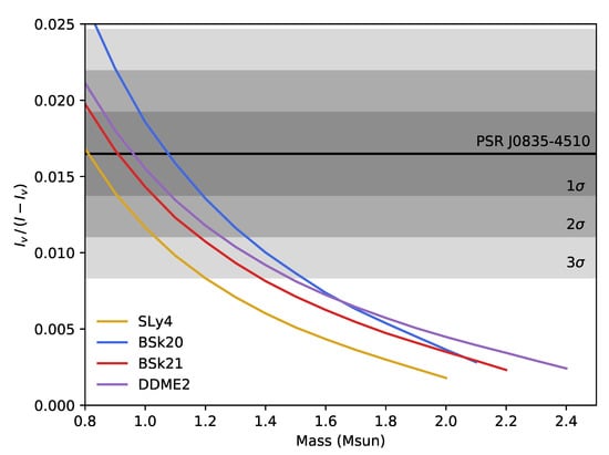 - Datta, B.; Alpar, M.A. Implications of the crustal moment of inertia for neutron-star equations of state. Astron. Astrophys. 1993, 275, 210–212. [Google Scholar]