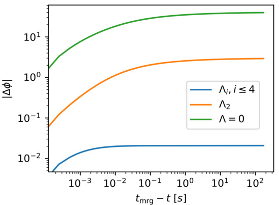 - Damour, T.; Nagar, A.; Villain, L. Measurability of the tidal polarizability of neutron stars in late-inspiral gravitational-wave signals. Phys. Rev. D 2012, 85, 123007. [Google Scholar] [CrossRef] [Green Version]