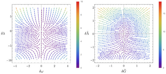 where and are the dimensionless Newton coupling and cosmological constant respectively, and we have suppressed the subscript k in Equation (15) for the sake of clarity.