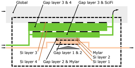 - Augustin, H.; Berger, N.; Bravar, A.; Briggl, K.; Chen, H.S.; Corrodi, S.; Dittmeier, S.; Gayther, B.; Gerritzen, L.; Gottschalk, D.; et al. The Mu3e Data Acquisition. IEEE Trans. Nucl. Sci. 2021, 68, 1833–1840. [Google Scholar] [CrossRef]