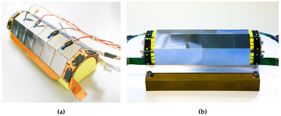 Pictures of inner layer thermo-mechanical mockup modules produced with (a) tape heaters and (b) silicon heaters [1].