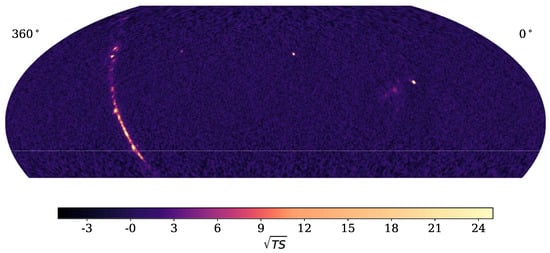 - Abeysekara, A.U. et al. [HAWC Collaboration] Search for TeV Gamma-Ray Emission from Point-like Sources in the Inner Galactic Plane with a Partial Configuration of the HAWC Observatory. Astrophys. J. 2016, 817, 3. [Google Scholar] [CrossRef]