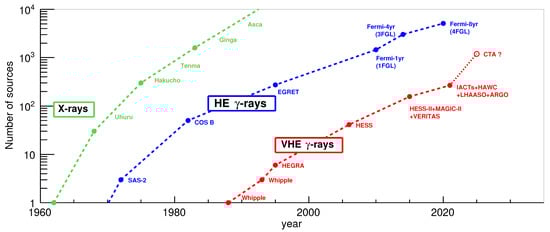 - Aharonian, F. et al. [H.E.S.S. Collaboration] A New Population of Very High Energy Gamma-Ray Sources in the Milky Way. Science 2005, 307, 1938–1942. [Google Scholar] [CrossRef]