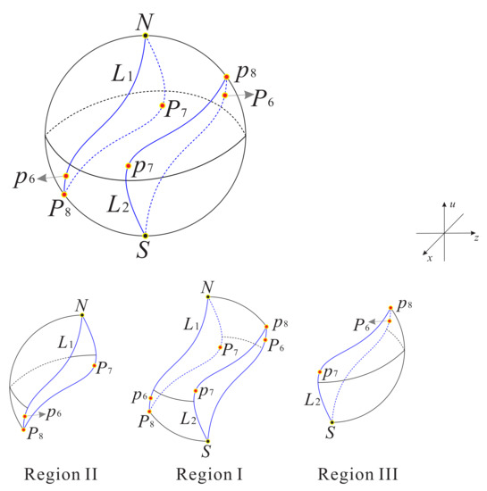 3.1.5. Phase Portrait on the Poincaré Sphere at Infinity