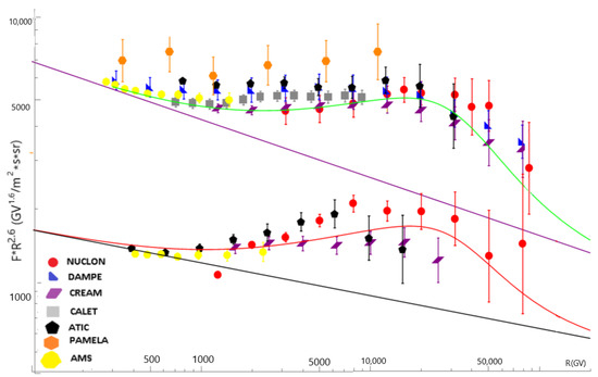 - Aguilar, M.; Aisa, D.; Alpat, B.; Alvino, A.; Ambrosi, G.; Andeen, K.; Arruda, L.; Attig, N.; Azzarello, P.; Bachlechner, A.; et al. Precision Measurement of the Proton Flux in Primary Cosmic Rays from Rigidity 1 GV to 1.8 TV with the Alpha Magnetic Spectrometer on the International Space Station. Phys. Rev. Lett. 2015, 114, 171103. [Google Scholar] [CrossRef] [PubMed]