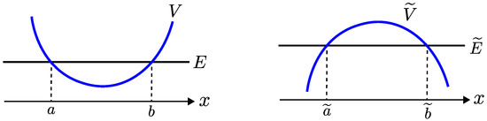 Next, we see a relation between bound states and resonant states. In this article, we particularly focus on two types of potentials and their sign-flipped ones , as shown in Figure 2. Since the potential has a well in these cases, it admits bound states. Then its inverted potential has resonant states. The energy eigenvalues of these two states are simply related by an analytic continuation of the quantum parameter ℏ. If setting ,3 the eigen-Equation (1) is related to (2) with and .4 Therefore physics in the system (2) may be described by that in the system (1). In particular, we expect the following exact spectral relation:5
