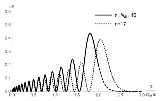 The (minimum) quantum number, , for the actual ground state, , therefore, depends on the mass, M, as required by the quantisation of the horizon area [8] and the corpuscular model of black holes [9,10]. Moreover, has a width