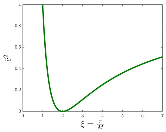 Effective speed of light squared versus the adimensional distance for the simulation of a Schwarzschild black hole.