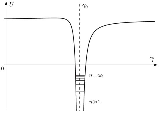 where the potential energy, which was obtained in the framework of McCrea–Milne’s classical cosmological model [], replacing the generalized momentum by the operator , has the form