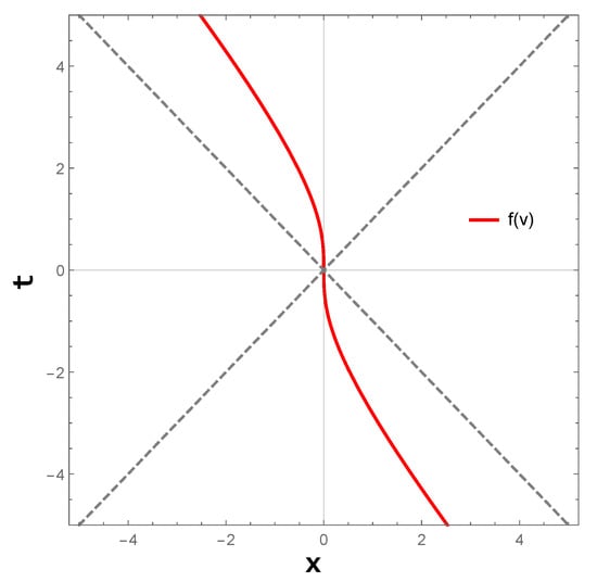 Let us make the analogy more concrete. If then , which is the acceleration. While , it is worth pointing out that itself is the Lorentz transformation (LT) in retarded time from un-tilded to tilded boosted frame , where the LT acts like a wave function. So our constraint on vanishing at infinity is exactly our condition in Appendix A, and the asymptotically inertial case we treat in the main text. Note that indeed is always positive. Now the derivatives of , and hence , are also related through the Schwarzian in Equation (10) to the energy flux —which arises from the acceleration—through