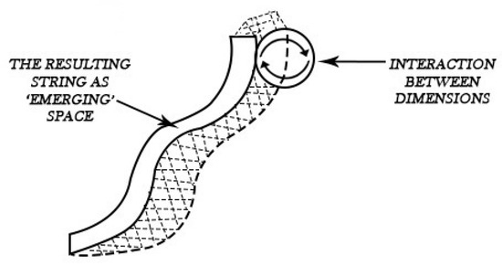 In conclusion, we have that our 11-dimensional spacetime “emerges” as a manifold with 12 dimensions, but, for our string interpretation, we consider that interactions between the dimensions create instability on the “emergent object” and such spacetime dimension will be “lost” by being unstable, i.e., it will “vibrate” within the other dimensions. Therefore, the string could be interpreted from the physical point of view, as a “fluctuating fragment of energy” in the dimensions of spacetime, which arises from the interaction between dimensions which we interpret topologically here. Recently, another study carried out by L. M. Silverberg and J. W. Eischen (see Reference [19]) considers the “fragments of energy” as the possible “building bricks” of the universe. From the point of view of our approach, these “floating fragments of energy” can be thought of as “emerging” from interactions that occur between the dimensions of space-time or the Bulk, which, for some reason of an intrinsic nature or for some initial situation, some of these dimensions behave in a way that we can mathematically describe them as “virtual” negative, which implies that they interact with the other dimensions.