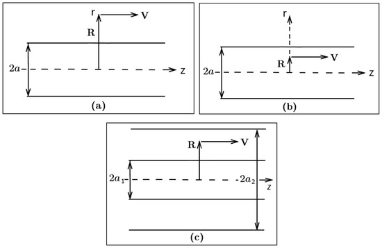 Figure 1 shows the cylindrical coordinate systems used and different configurations to be analyzed: convex cylindrical surface (a), cylindrical channel (b), and the case of particle motion between two coaxial cylindrical shells (c). The wall surface material is characterized by a local dielectric constant ε(ω), and the particle is characterized by the dipole polarizability α(ω). We use a cylindrical coordinate system with coordinates
