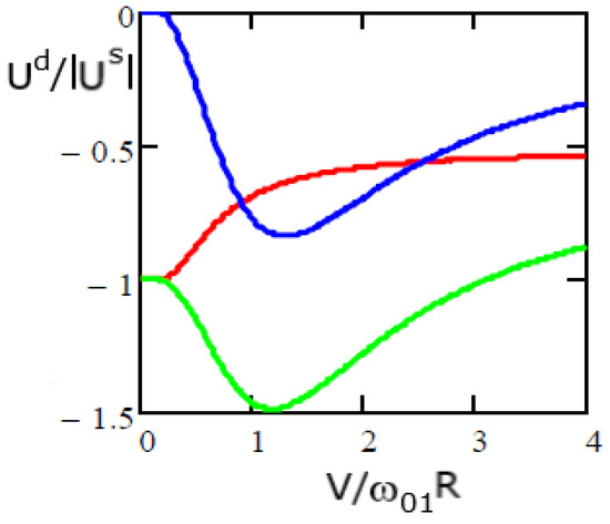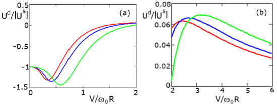 The remarkable finding is that the dynamic vdW potential can be positive (repulsive) (panel (b)), though the coupling constant is an order (or more) less than that of the static potential . At moderate velocity–distance parameters , the dynamic potential is attractive, and the coupling constant is 1.5 times higher than the static one.