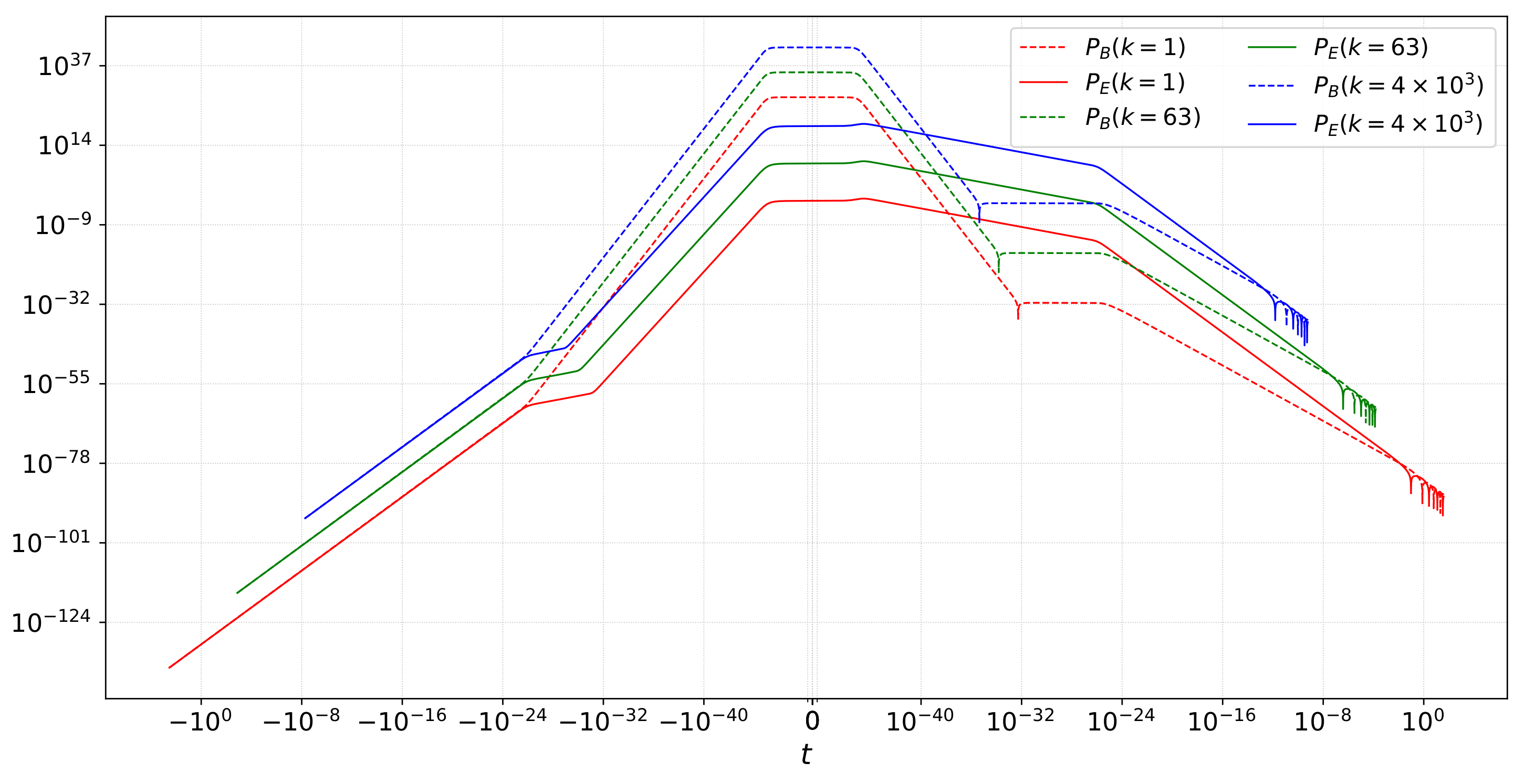 - Sriramkumar, L.; Atmjeet, K.; Jain, R.K. Generation of scale invariant magnetic fields in bouncing universes. J. Cosmol. Astropart. Phys. 2015, 9, 010. [Google Scholar] [CrossRef]
