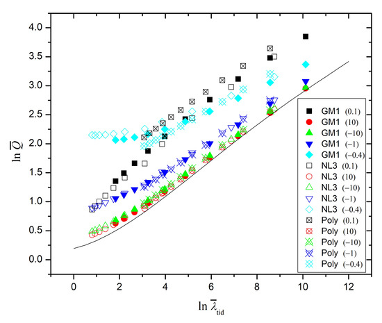 - Sham, Y.H.; Chan, T.K.; Lin, L.M.; Leung, P.T. Unveiling the university of I-Love-Q relations. Astrophys. J. 2015, 798, 121. [Google Scholar] [CrossRef]