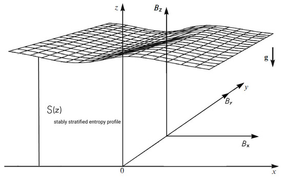 - Gilman, P.A. Stability of baroclin flows in a zonal magnetic field: Part I. J. Atmos. Sci. 1967, 24, 101–118. [Google Scholar] [CrossRef][Green Version]