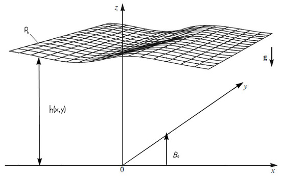 Horizontal dynamics of the magnetic field in the shallow water approximation is significantly modified by an external vertical magnetic field [43]. Equation (1) represent a closed system that is used for analysis of wave processes. The following equations for magnetic field