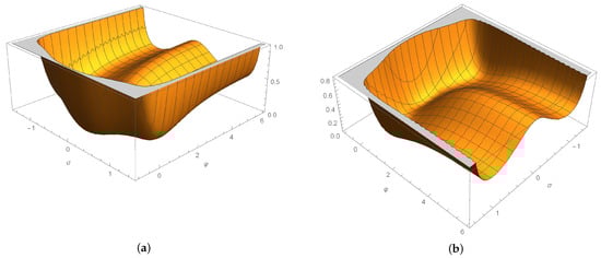 The gravity model in Equation (6) is a representative of the modified gravity theories, which are known to be classically equivalent to the scalar-tensor theories of gravity defined by the action (4) after a (Legendre–Weyl) field redefinition, see, e.g., in [,] for details of the equivalence derivation in our notation. The specific correspondence is given by