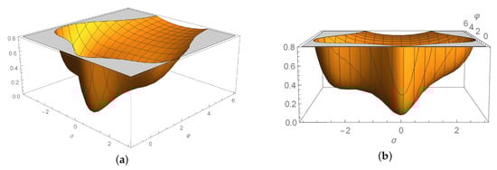 in terms of several (real) scalar fields , . The scalar kinetic terms in Equation (5) have the form of the Nonlinear Sigma-Model (NLSM) [] with a metric in the field space.