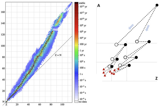- Rauscher, T.; Dauphas, N.; Dillmann, I.; Fröhlich, C.; Fülöp, Z.; Gyürky, G. Constraining the astrophysical origin of the p-nuclei through nuclear physics and meteoritic data. Rep. Prog. Phys. 2013, 76, 066201. [Google Scholar] [CrossRef] [PubMed]