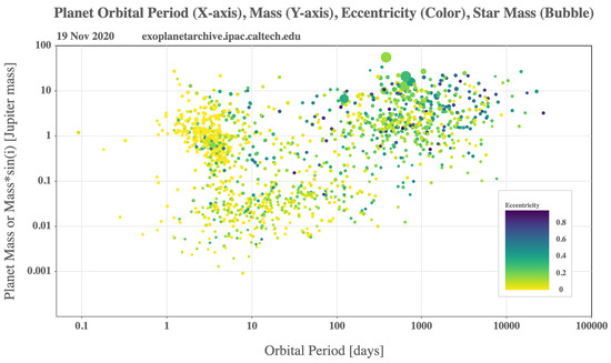 - NASA Exoplanet Archive. Confirmed Planets Table; NASA: Pasadena, CA, USA, 2020. [CrossRef]
