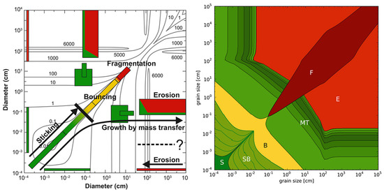- Windmark, F.; Birnstiel, T.; Ormel, C.W.; Dullemond, C.P. Breaking through: The effects of a velocity distribution on barriers to dust growth. Astrophys. Astron. 2012, 544, L16. [Google Scholar] [CrossRef]