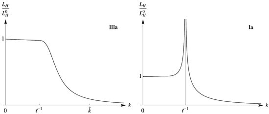with in and . Hence, Equation (62) yields the following “running Hubble length” along the trajectories of Type IIIa (plus sign) and of Type Ia (minus sign), respectively: