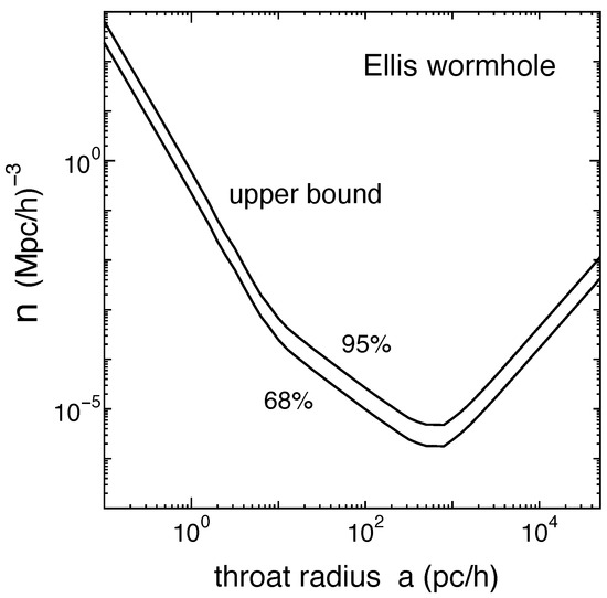 - Takahashi, R.; Asada, H. Observational Upper Bound on the Cosmic Abundances of Negative-mass Compact Objects and Ellis Wormholes from the Sloan Digital Sky Survey Quasar Lens Search. Astrophys. J. Lett. 2013, 768, L16. [Google Scholar] [CrossRef]