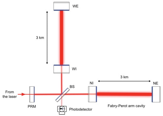 where L is the length of the arm and is the change in the arm induced by a passing GW. This change in length of the arms is decoded in terms of fringes at the photodetector. The formula of strain suggests that a very long arm helps in the detection but, this is challenging for practical and economic constraints. On the other hand, if the arm is very long, GW amplitude changes with time during the round trip of light in the arms. A time average of this change will in turn scale down the sensitivity of the detector. By taking these arguments into account, the arm length for LIGO has been chosen to be 4 km and that of Virgo and KAGRA is 3 km. Although a very long arm is not feasible, one can still make the light storage time higher without extending the interferometer using a Fabry-Perot (FP) cavity. The FP cavity is a resonant cavity where the stored resonating electromagnetic field enables us to increase the effective length of the interferometer and make the apparatus more sensitive. For LIGO, this results in the bouncing of light 300 times by making the effective length of the interferometer to be 1200 km. This increased effective length reduces one important noise—the photon shot noise described below but not other sources of noise like the thermal noise.