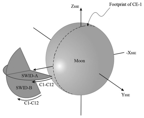 Two identical SWID detectors (SWIDA and SWIDB) were installed on Chang’E-1, and they were mutually perpendicular to provide a large FoV, as illustrated in Figure 3 [20].