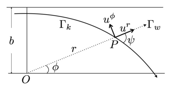 Equation (1) gives the measurable angle at the position P between the tangent vector of the light ray that we investigate and the tangent vector of the radial null geodesic connecting the center O and the position of observer P, and is the 4-velocity of the observer P. See Figure 1 and for the derivation of Equation (1), refer to [20] and see also [37,38,39]. Equation (1) enables us to compute the effect of the motion of the observer easily and straightforwardly because the equations of the null geodesic of and do not depend on the motion of the observer; the velocity effect is incorporated in the formula as the form of the 4-velocity of the observer .