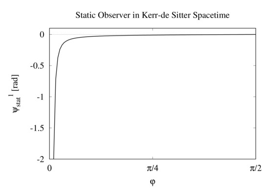 First, we deal with the case of the static observer. Because the Kerr contributions appearing in Equations (29) and (30) are examined in [37], we extract the terms concerning the cosmological constant from Equation (29) and put,