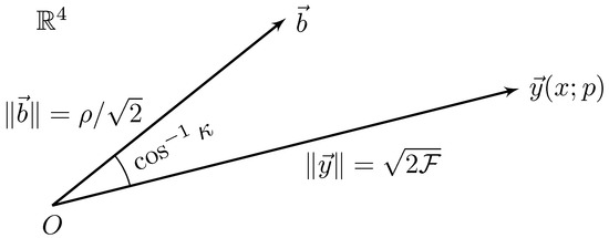 be the cosine of the angle between and . The substitution of Equations (9)–(11) into Equation (8) gives