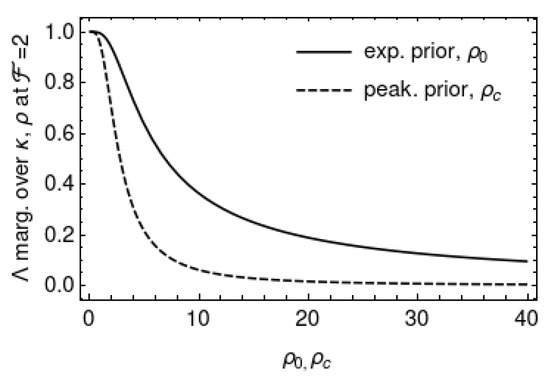 The marginalised likelihood ratio of Equation (19) may be further analytically marginalised over , depending on its choice of prior. For example, the choice of a uniform (improper) prior on ,