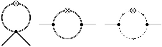 Diagrams that contribute to the scale dependence of the graviton two-point function. Double lines indicate gravitons, dashed lines stand for the Faddeev–Popov ghosts, and the circled cross denotes the regulator insertion .