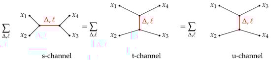 Here, is a Gauss hypergeometric function. Inside the four-point function Equation (13), we can fuse together operators (12) and (34). This is the s-channel expansion of the correlator. We could have also expanded into the t-channel where we fuse (14) and (23), or in the u-channel where we fuse (13) and (24). Since the OPE is associative, these three expansions must be the same. This is the statement of crossing symmetry which is fully equivalent to the associativity of the OPE, and results in the following equation: