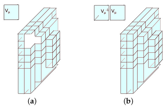 Center vortex correlations were considered for the first time in [3]. In (2 + 1)d Minkowski spacetime, the order–disorder algebra in Equation (2) says that the action of on gives