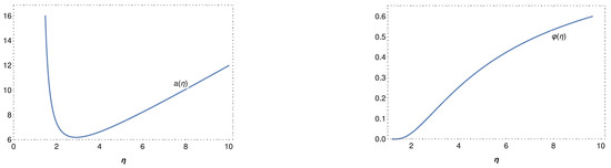 Again, we have a non-singular solution recovering the classical solution asymptotically, but now the bounce in this case is asymmetric. Asymmetric bouncing models have been studied in Ref. [