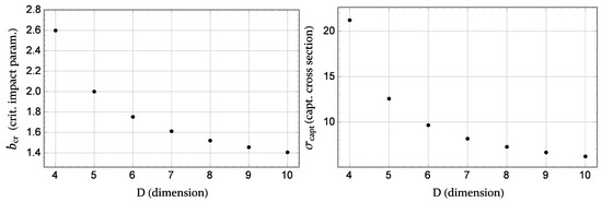 The critical impact parameter and capture cross-section of a photon by the Schwarzschild–Tangherlini black hole for several values of spacetime dimension.