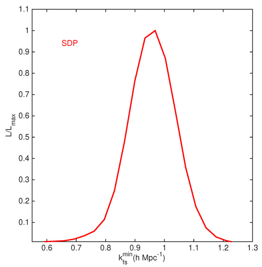 Figure 4 presents the likelihood probability distributions of the free-streaming horizon wave-number , obtained for our models. One should note that these wave-numbers, hMpc, correspond to the typical size of dwarf galaxies [37], while the observations of Ly- absorption in spectra of distant quasars are tracers of linear density fluctuations on scales hMpc.