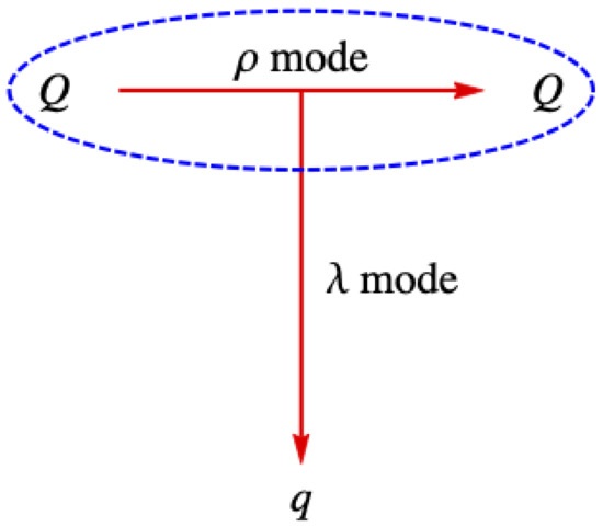 The relevant degrees of freedom for the relative motion of the three constituent quarks provided by the relative Jacobi coordinates ( and ) are given by [14,15]