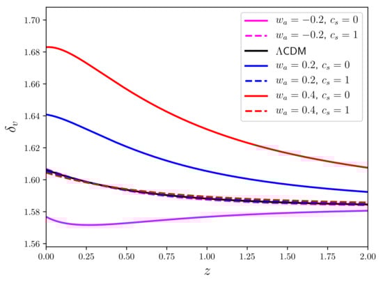 As we will see later, the value is of great importance in structure formation studies that make use of analytic or semi-analytic mass functions. This quantity is modified in the presence of homogeneous and inhomogeneous DE.