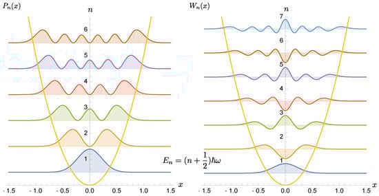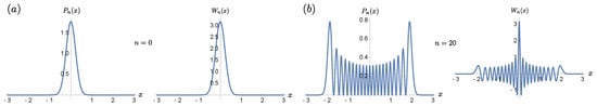 In particular we note that (27) shows a correspondence between operator in Weyl ordering and its classical expression. The Wigner function provides an alternative formulation of quantum mechanics in terms of the phase space variables. In (24), the Wigner function is positive definite in phase space. Thus it is often chosen as the candidate of a classical probability distribution, according to this observation. In fact, in general, it is not a positive definite, and can have negative values over regions, the area of each of which is of order ℏ in a two-dimensional phase space [,,]. We will provide a few examples at the end of this section.