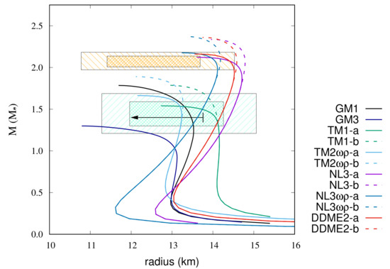 - Bauswein, A.; Just, O.; Janka, H.-T.; Stergioulas, N. Neutron-star radius constraints from GW170817 and future detections. Astrop. Jour. Lett. 2017, 850, L34. [Google Scholar] [CrossRef]