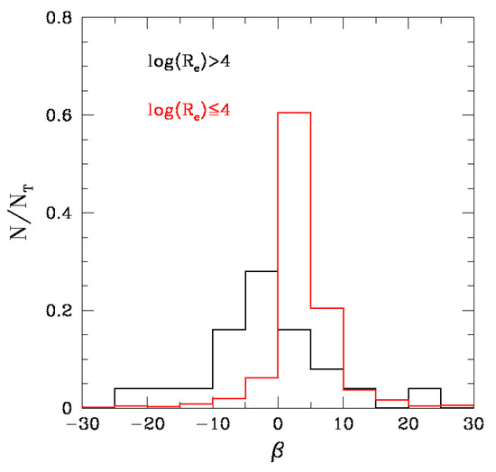 This curved distribution has been used to argue for distinct channels of formation for dwarfs and giants ETGs (see, e.g., [6,7,8,9,10,11]). Many authors believe that there are two distinct kinds of ETGs, whose properties differ mainly for the different history of merging events, in particular for the characteristics of the last major mergers, wet or dry, according to whether cold gas dissipation and starbursts occurred or not. However, the existence of two physically distinct families of ETGs is not universally accepted. Many researchers advocated for a continuity among the ETG population [12,13,14,15]. Graham [16] in particular explored a range of alternative radii, including those where the projected intensity drops by a fixed percentage, showing that the transition at ∼−19 mag is likely artificial and does not mark a boundary between two different types of ETGs. According to this view, the curved distribution of ETGs in the space is likely associated with the continuous change of the Sérsic index n with the absolute magnitude (the relation found by [17,18]). Along the same line, Graham and Guzmán [19] argued that the only magnitude of importance in the plane is at mag, where a division between the spheroidal components with Sérsic profile and those with core-Sérsic profile is visible. This magnitude corresponds to a mass of ∼2 × .
