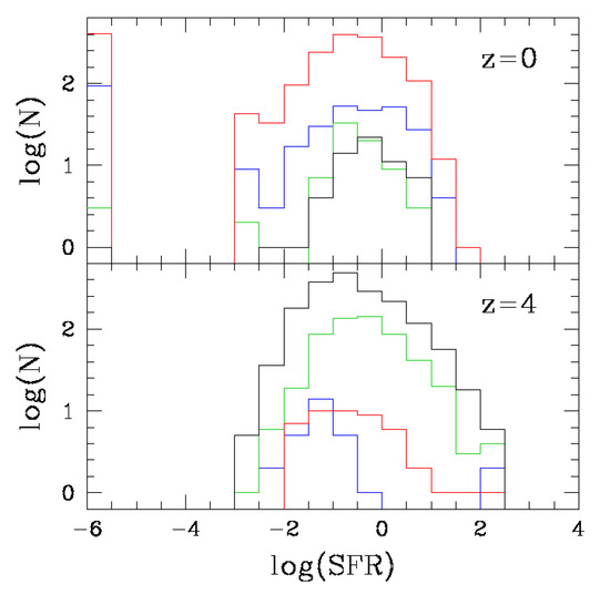 - Somerville, R.S.; Davé, R. Physical Models of Galaxy Formation in a Cosmological Framework. Annu. Rev. Astron. Astrophys. 2015, 53, 51–113. [Google Scholar] [CrossRef]