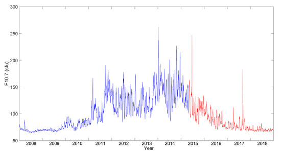 In this work, the ionospheric F layer peak electron density parameter (NmF2) and the ionospheric F layer peak height parameter (hmF2) obtained from COSMIC measurements and ground-based ionosonde observations at Ganzi (31.2° N, 100.4° E) from May 2015 to December 2018 are used to study the correlation of the parameters from two kinds of techniques. The data used in this paper mainly occurred during periods of low EUV flux, as indicated by the low F10.7 values shown in Figure 1.