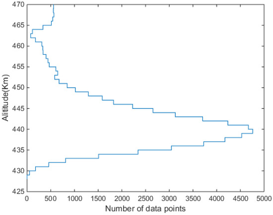 The number of data points with altitude, with the maximum data point concentrated at an altitude of 440 km.