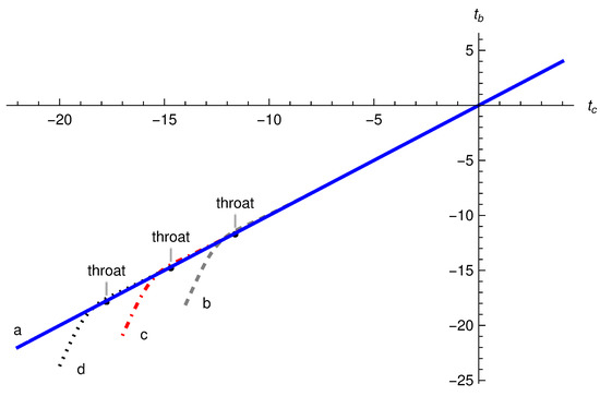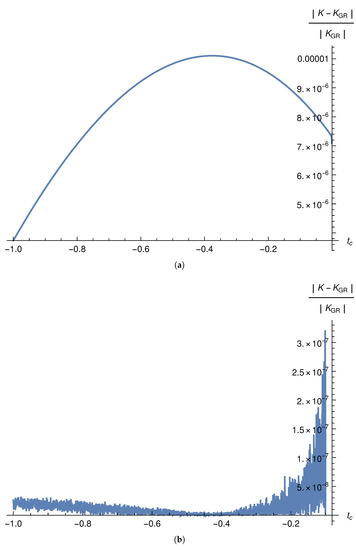 It should be noted that the numerator of is a function of and the one of is a function of , where and are related one to the other through Equation (56). In particular, for , from Equation (56), we find: