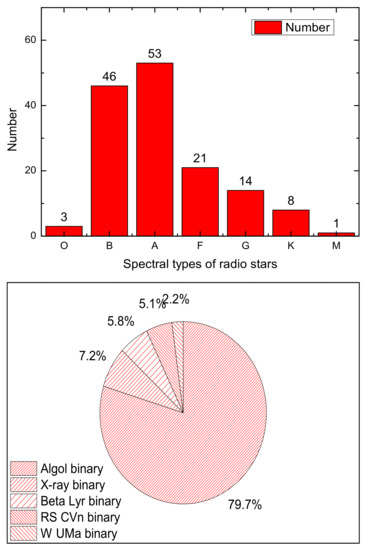 Radio radiation has been detected in all star types across the Hertzsprung–Russell diagram [1]. There exist approximately 150 eclipsing binaries that displayed radio emission. Stellar radio radiation provides the most direct probes of physical processes, including magnetic activity, particle acceleration, stellar disk and mass transport [2]. Early astronomy studies were based on the observation of visible bands because the study of astrophysics is dependent on the capabilities of the detection equipment. Radio technology, such as Very Large Array (VLA) [3], is improving with the advent technology, which allows the nature of radio to be studied. Early radio observations were influenced by many factors, for example, instrumentation and background radiation. Kellermann and Pauliny-Toth [4] observed that the radio signal of the star named Ori about 0.11 ± 0.03 Jy in the 2.8 cm band under such condition. Then, Seaquist [5] obtained the radio intensity of four stars in the 2.85 cm band. Güdel [1] presented a radio Hertzsprung-Russell diagram between 1 and 10 GHz based on a radio catalog with 3021 radio stars [6]. Later, Wendker [7] updated it to 3699 radio stars in 2001, and revealed the ubiquity of stellar radio emissions.